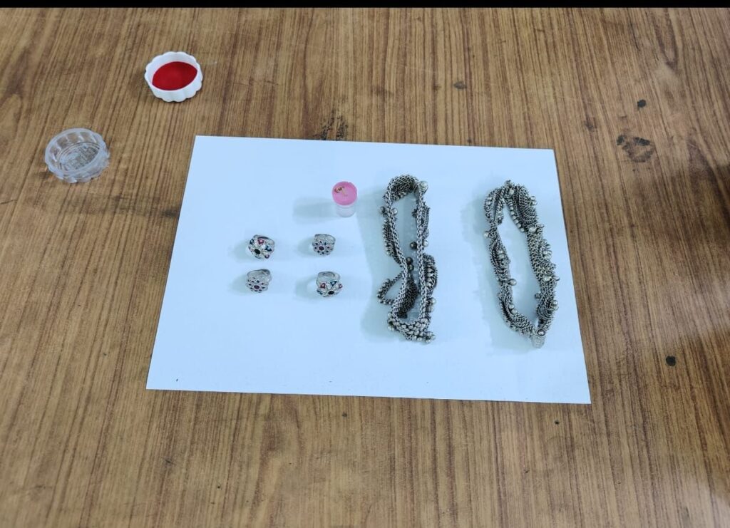 वहीं ग्राम नावापारा टेण्डा में संचालित संजय महाराज राशन दुकान के संचालक संजय शर्मा (50 वर्ष) द्वारा रिपोर्ट दर्ज कराई गई कि दिनांक 21 फरवरी को दुकान बंद कर घर चले गए थे और अगले दिन सुबह दुकान खोलने पर पीछे का दरवाजा टूटा हुआ मिला तथा दुकान के अंदर रखे साबुन, तेल, क्रीम, पेस्ट, हेयर ऑयल, शैम्पू, फेसवॉश, सीएफएल बल्ब, टिफिन बॉक्स सहित अन्य राशन सामग्री कुल कीमती लगभग 15,000 रुपये चोरी होना पाया गया। इस संबंध में अपराध क्रमांक 64/2026 धारा 331(4), 305(ए) बीएनएस के तहत अपराध पंजीबद्ध कर जांच शुरू की गई। थाना प्रभारी घरघोड़ा निरीक्षक कुमार गौरव साहू के नेतृत्व में पुलिस टीम द्वारा माल मुल्जिम की पतासाजी के दौरान संदेह के आधार पर ओमप्रकाश अगरिया उर्फ चकदे (25 वर्ष) निवासी ग्राम नावापारा टेण्डा और एक विधि से संघर्षरत बालक को हिरासत में लेकर पूछताछ की गई। पूछताछ में दोनों ने मकान और राशन दुकान में चोरी करना स्वीकार किया। आरोपी ओमप्रकाश अगरिया ने चोरी की गई चांदी की पायल को बसीर कॉलोनी घरघोड़ा स्थित आर.जी. ज्वेलर्स के संचालक गौतम मंडल (40 वर्ष) को बेचना बताया, जिस पर पुलिस ने गौतम मंडल को भी गिरफ्तार किया। आरोपी ओमप्रकाश अगरिया के मेमोरेंडम पर एक नग सोने का फुली और दो नग चांदी का बिछिया बरामद किया गया, वहीं विधि से संघर्षरत बालक से चोरी की संपत्ति बिक्री से प्राप्त 1000 रुपये बरामद किए गए। ज्वेलर्स गौतम मंडल से चोरी की गई एक जोड़ी चांदी का पायल बरामद किया गया। इसी प्रकार राशन दुकान से चोरी किया गया लगभग 15,000 रुपये का पूरा सामान आरोपी ओमप्रकाश अगरिया से बरामद कर जप्त किया गया। कुल मिलाकर *दोनों मामलों में चोरी की गई लगभग 45,100 रुपये की संपत्ति की शत-प्रतिशत बरामदगी की गई है* । मामले में धारा 3(5) बीएनएस भी जोड़ी गई है। प्रकरण में *आरोपी (1) ओमप्रकाष अगरिया उर्फ चकदे पिता तुलसी राम अगरिया उम्र 25 वर्ष निवासी ग्राम नावापारा टेण्डा थाना घरघोड़ा जिला रायगढ़ (2) गौतम मंडल पिता बैद्यनाथ मंडल उम्र 40 वर्ष सा. ग्राम निश्चिंचपुर थाना दासपुर जिला मेदनीपुर (पश्चिम बंगाल) हा.मु. आर.जी. ज्वेलर्स बसीर कालोनी घरघोड़ा, थाना घरघोड़ा, जिला रायगढ़ (छ.ग.) तथा विधि से संघर्षरत बालक* को गिरफ्तार कर सक्षम न्यायालय में पेश किया गया, जहां से उन्हें न्यायिक रिमांड पर भेजा गया है।