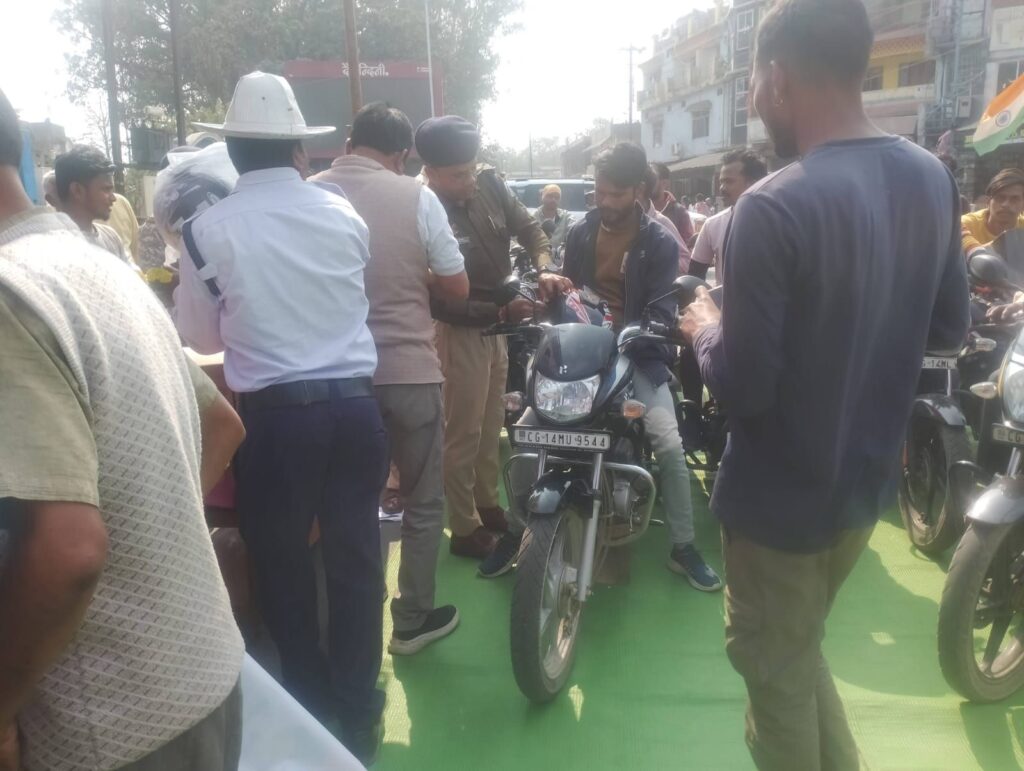 ➡️ कार्यक्रम के समापन के दौरान पुलिस की टीम के द्वारा अतिरिक्त पुलिस अधीक्षक जशपुर राकेश कुमार पाटनवार के नेतृत्व में शहर में “हेलमेट पहने, सुरक्षित रहें” का संदेश देते हुए संपूर्ण शहर में हेलमेट जागरूकता बाईक रैली निकाली गई व आम नागरिकों की हेलमेट पहनने हेतु प्रेरित करने, अतिरिक्त पुलिस अधीक्षक के द्वारा आम नागरिकों को हेलमेट वितरण किया गया। साथ ही पुलिस के द्वारा उपस्थित जन समूहों को यातायात नियमों के पालन व सुरक्षित ड्राइविंग की शपथ भी दिलाई गई।