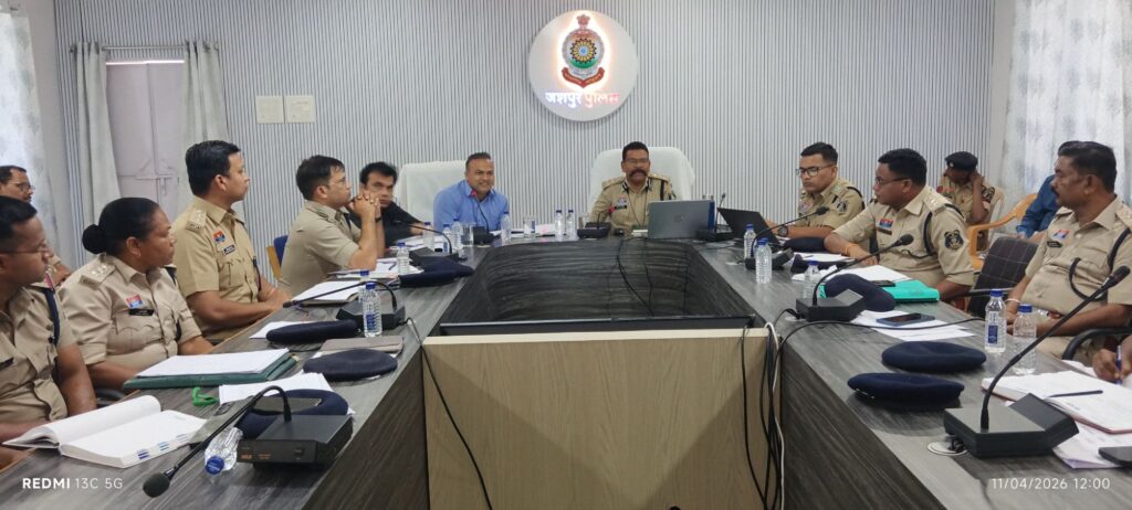 ➡️आज दिनांक 11 अप्रैल 2026 को पुलिस कार्यालय जशपुर में डीआईजी एवं एसएसपी जशपुर डाॅ. लाल उमेद सिंह द्वारा अपराध समीक्षा बैठक लिया गया जिसमें समस्त राजपत्रित अधिकारीगण, लोक अभियोजन अधिकारीगण सहित थाना/चौकी प्रभारीगण, सभी शाखाओं के प्रभारीगण उपस्थित रहे। डीआईजी द्वारा अनुविभागवार थाना/चौकी के लंबित प्रकरणों की जानकारी लिया गया एवं उसका निराकरण हेतू निर्देशित किया गया।