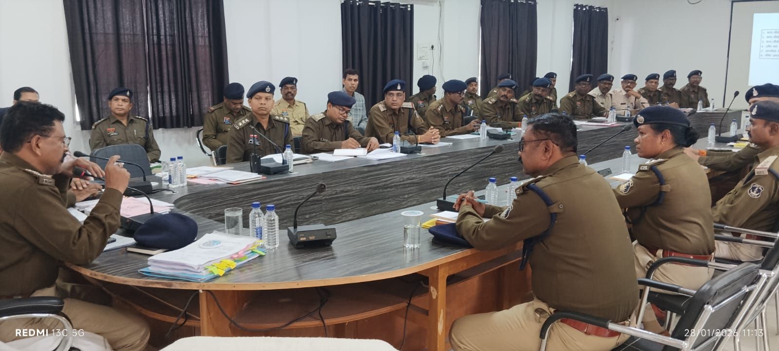 ➡️आज दिनांक 28 जनवरी 2026 को पुलिस कार्यालय जषपुर में डीआईजी एवं एसएसपी जशपुर डाॅ. लाल उमेद सिंह द्वारा अपराध समीक्षा बैठक लिया गया जिसमें समस्त राजपत्रित अधिकारीगण सहित थाना/चौकी प्रभारीगण, सभी शाखाओं के प्रभारीगण उपस्थित रहे, नव पदस्थ कप्तान द्वारा सभी से संक्षिप्त परिचय प्राप्त कर अनुविभागवार थाना/चौकी के लंबित प्रकरणों की जानकारी लिया गया एवं उसका निराकरण हेतू निर्देषित किया गया।