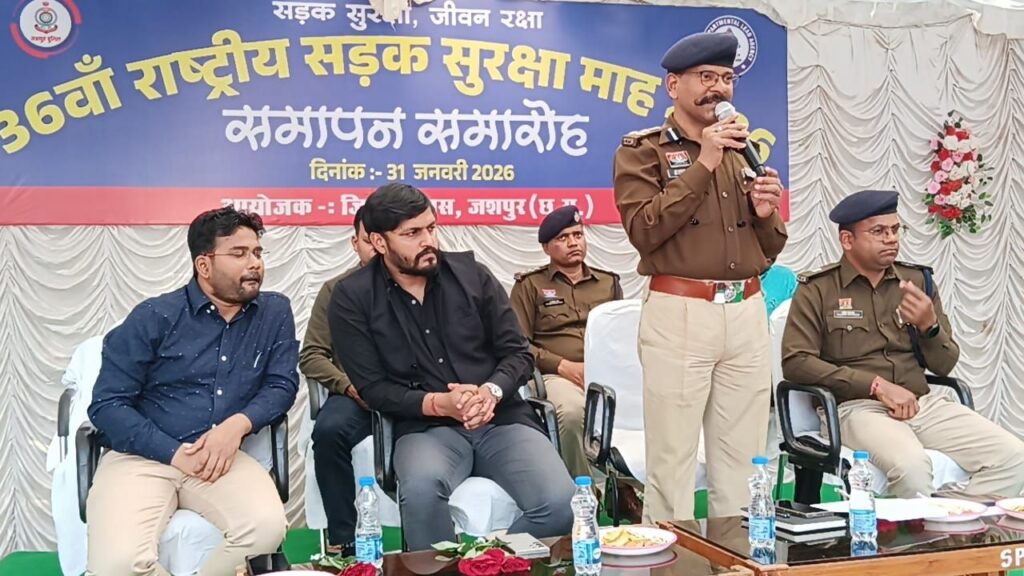 ➡️ गौरतलब है कि बढ़ती सड़क दुर्घटनाओं में कमी लाने व आम नागरिकों को यातायात नियमों के पालन के प्रति जागरूक करने के उद्देश्य से जशपुर पुलिस दिनांक 01.01.26 से 31.01.26 तक विशेष अभियान 36 वाँ राष्ट्रीय सड़क सुरक्षा माह मना रही थी, जिसका आज दिनांक 31.01.26 को एस डी ओ पी जशपुर कार्यालय परिसर में जागरूकता कार्यक्रम का आयोजन कर समापन किया गया। इस दौरान कार्यक्रम में उपस्थित नागरिकों एवं छात्राओं को यातायात नियमों के पालन तथा सुरक्षित यातायात के महत्व के बारे में विस्तार से जानकारी दी गई।