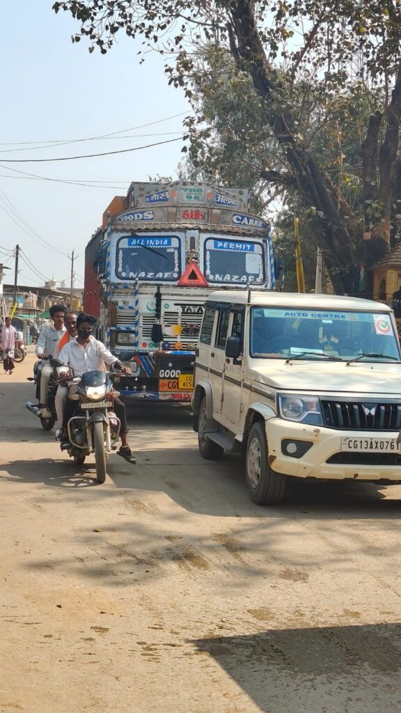बाईपास के बावजूद शहर में दौड़ रहे भारी वाहन, घरघोड़ा में नियमों की अनदेखी”
