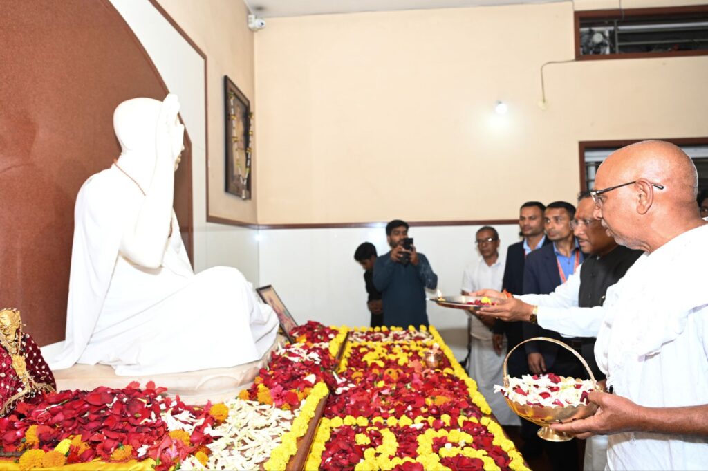 रायगढ़, 14 फरवरी 2026/ मुख्यमंत्री श्री विष्णु देव साय अपने रायगढ़ प्रवास के दौरान आज ग्राम बनोरा स्थित अघोर गुरु पीठ ब्रह्मनिष्ठालय पहुंचे। उन्होंने आश्रम के उपासना स्थल पर अघोरेश्वर अवधूत भगवान राम जी की प्रतिमा के दर्शन कर प्रदेशवासियों की सुख, समृद्धि और खुशहाली की कामना की। इस अवसर पर उन्होंने अघोरेश्वर के प्रिय शिष्य बाबा प्रियदर्शी भगवान राम जी के दर्शन कर आशीर्वाद एवं मार्गदर्शन भी प्राप्त किया।